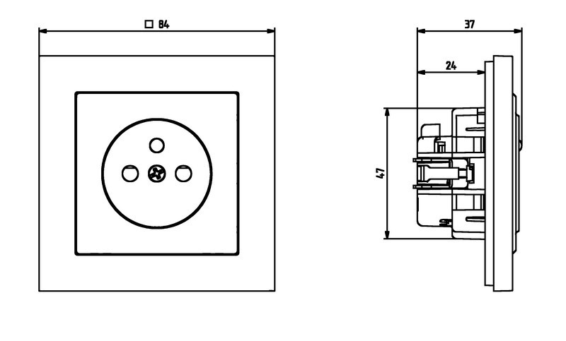 SONATA GP-1RZP/m/33  gniazdo pojedyncze z uziemieniem oraz przesłonami torów prądowychSONATA GP-1RZP/m/33  gniazdo pojedyncze z uziemieniem oraz przesłonami torów prądowych