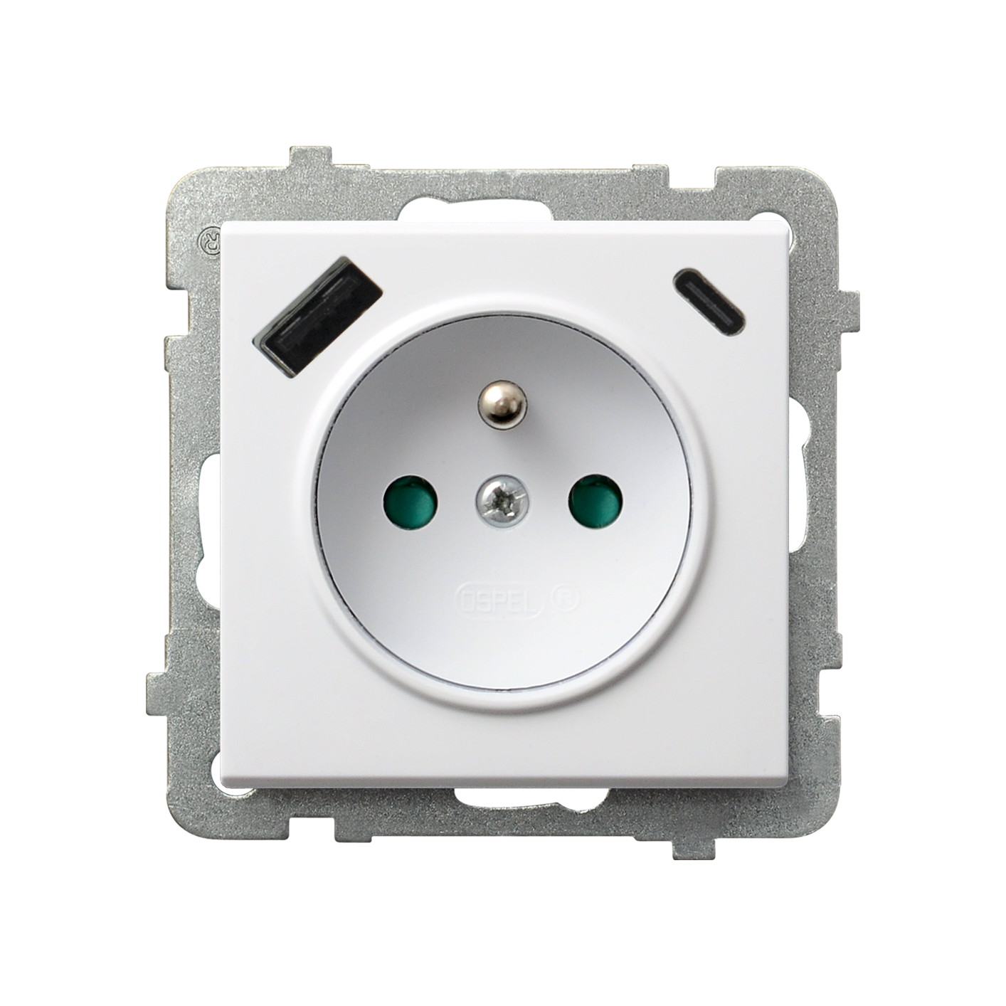 SONATA GP-1RZPUSBAC/m/75  gniazdo pojedyncze z uziemieniem i przesłonami torów prądowych oraz ładowarką USB typu A+C
