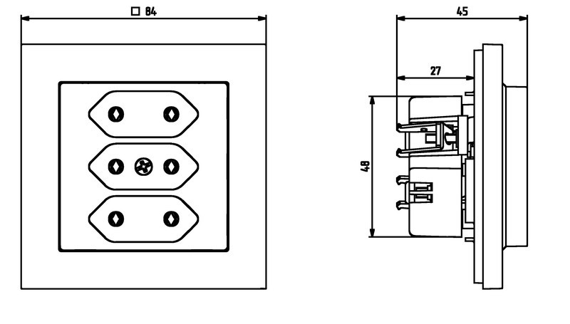 SONATA GP-3R/m/33  gniazdo potrójne bez uziemienia na płaskie wtyczki